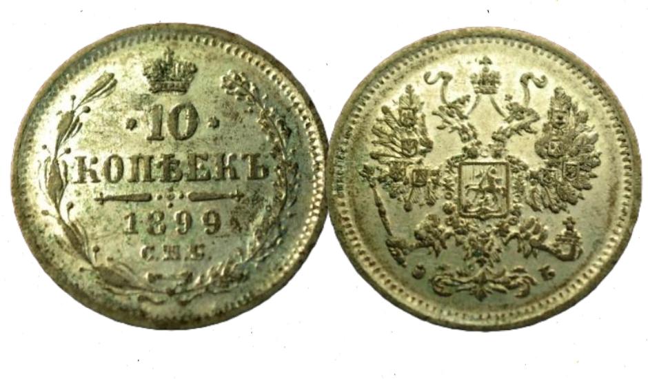 10 копеек 1899. Подобный тут уже показывал но лишним не будет.