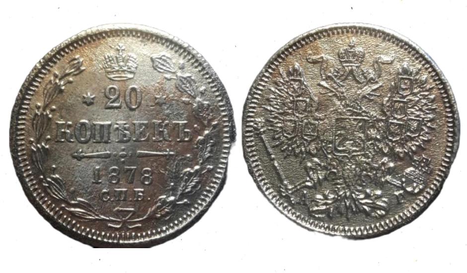20 копеек 1878 аг неправильные инициалы минцмейстера