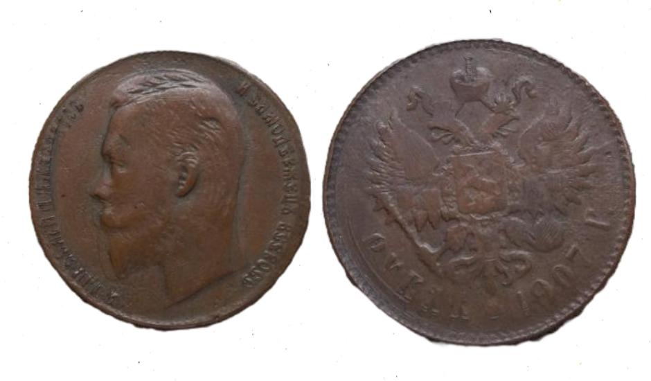 1 рубль 1907 вес 17.30 грамма материал медь гурт рубчатый