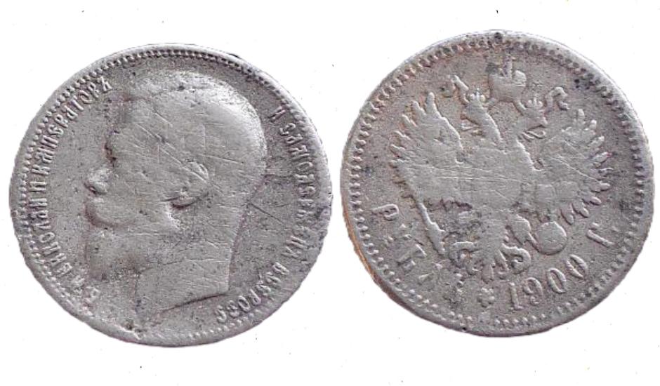 Рубль 1900 года вес 19 грамм с чем-то  гурт надпись