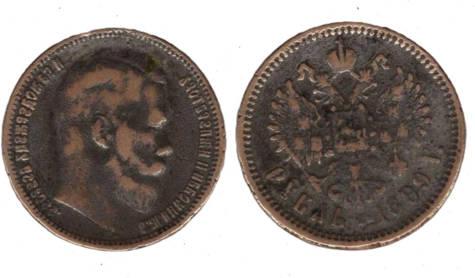 Рубль 1899 гурт надпись весь в забоинах