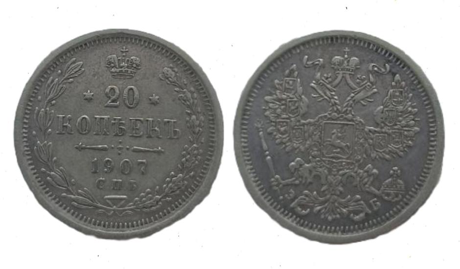 20 копеек 1907 качественный фальшак вес 3.1 грамм