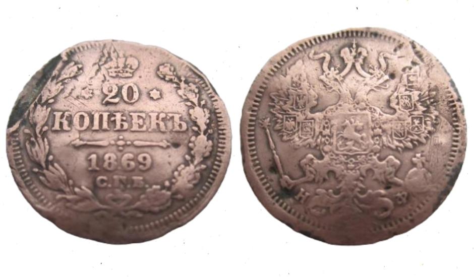 20 копеек 1869 СПБ - НФ, неправильные знаки минцмейстера.