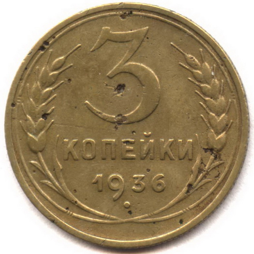Монета – 3 копейки 1936 года шт. 20к. 1935