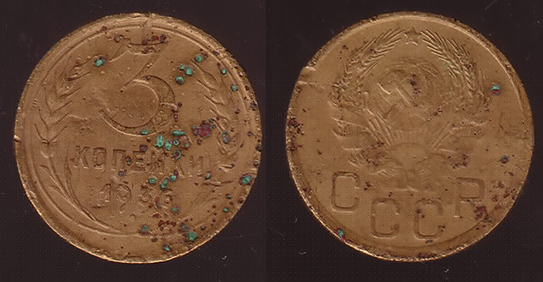 У меня 3 копейки 1936 (20) были всего дважды (сам не находил ни разу) - та, что в коллекции, несколько лучше этой, и эта была. 20 копеек 1936 (3) сам находил дважды и покупал занедорого ещё три или четыре раза. Я лично считаю 3 копейки реже, чем 20.