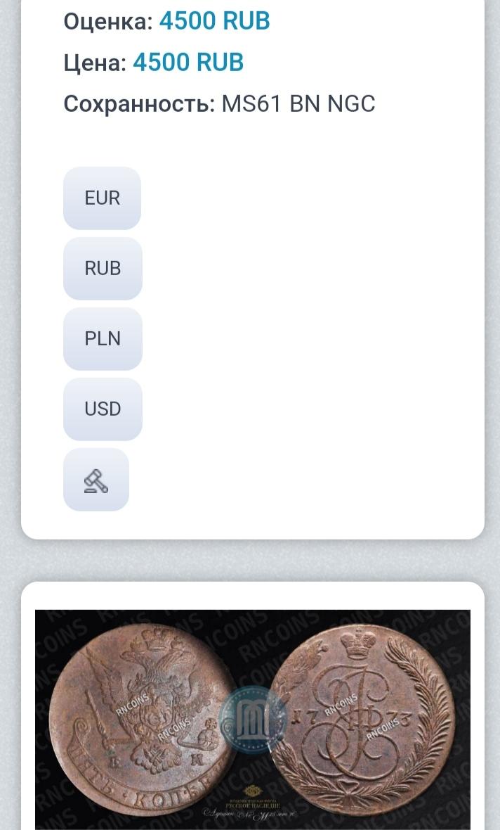 25 ноя 2023, 12:40:34 Как обычно развели тему на 5 страниц... Что ценится в монетах. Цвет, рельеф, поле монеты, и главное центровка. У ТС, неплохая монета. Естественно для идеала как до луны. Но денег из за надписи на коробке стоить будет прилично. Что поделаешь, покупают не плохо такое. Так что уйдёт нормально думаю но не здесь.... 0 Поделиться сообщением Ссылка на сообщение Поделиться на другие сайты