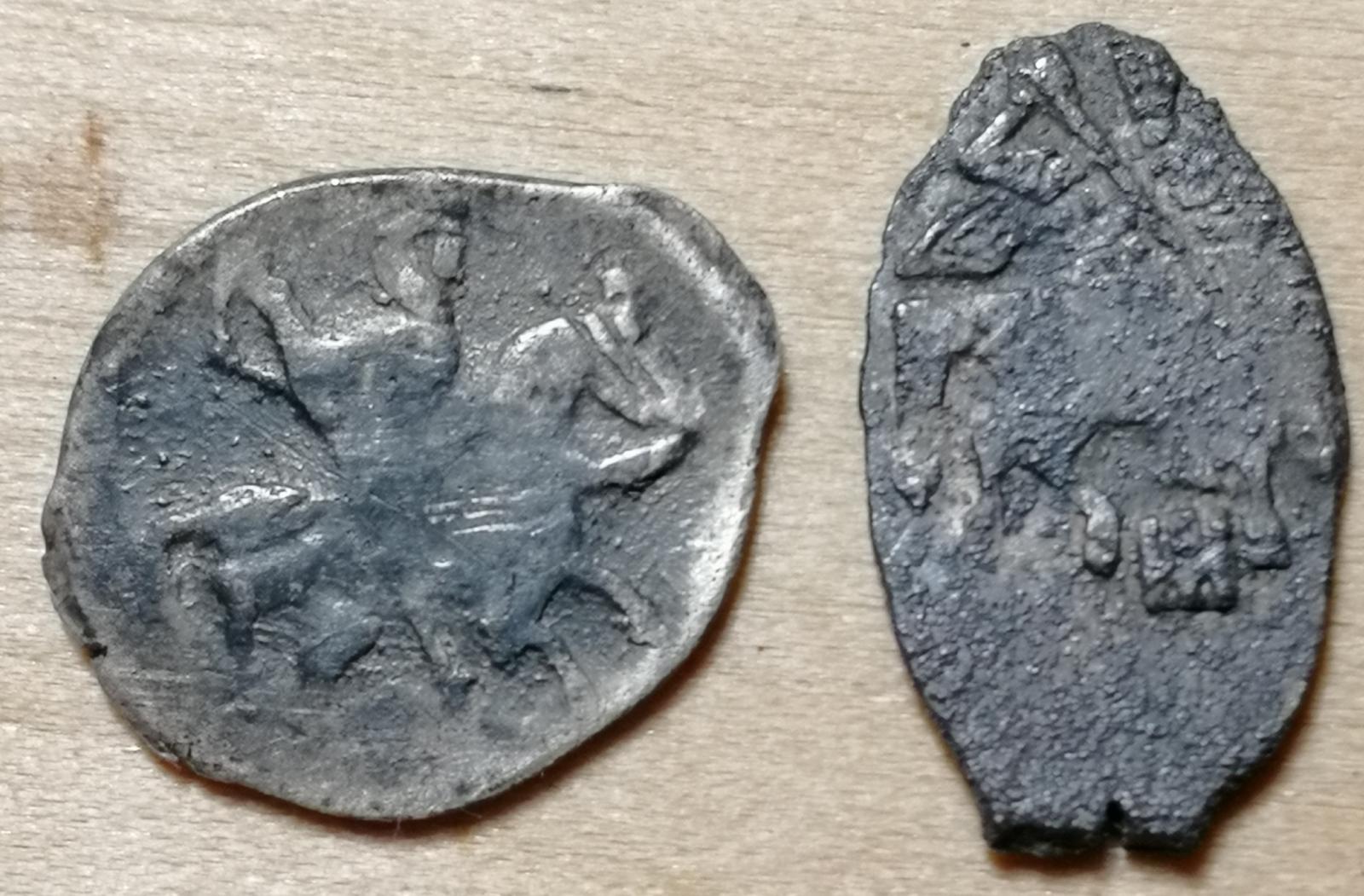 У первой лицевой штемпель №11 (прорисовка верхней части плаща, и хвоста коня)