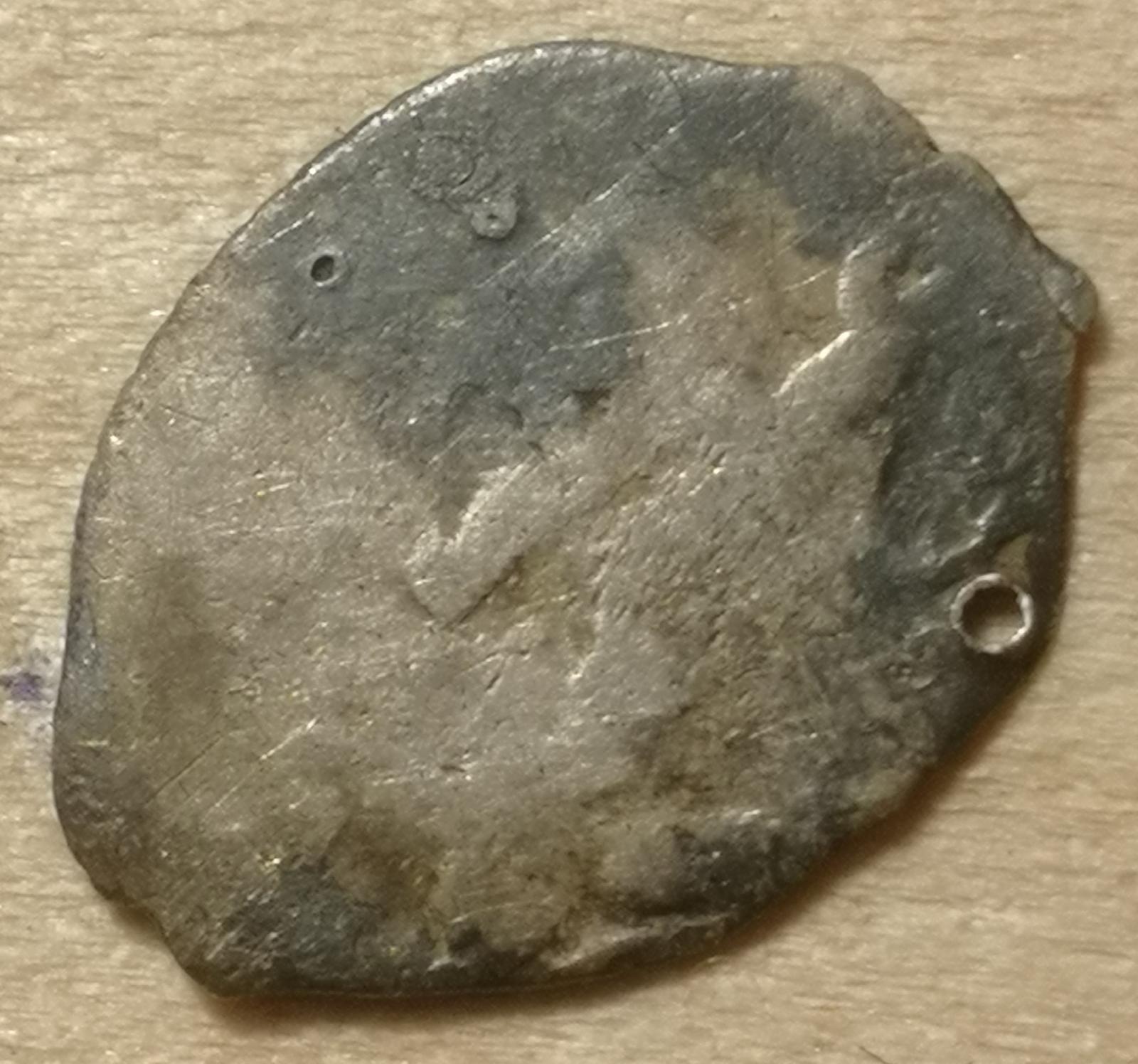 Справа копейка совместного правления Ивана и Петра Алексеевичей. Если правильно л.с. определил, то КГ1558, без редкости.