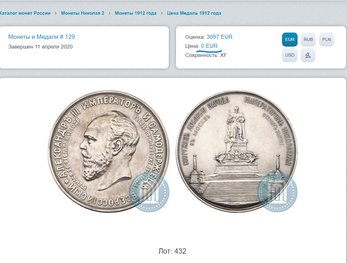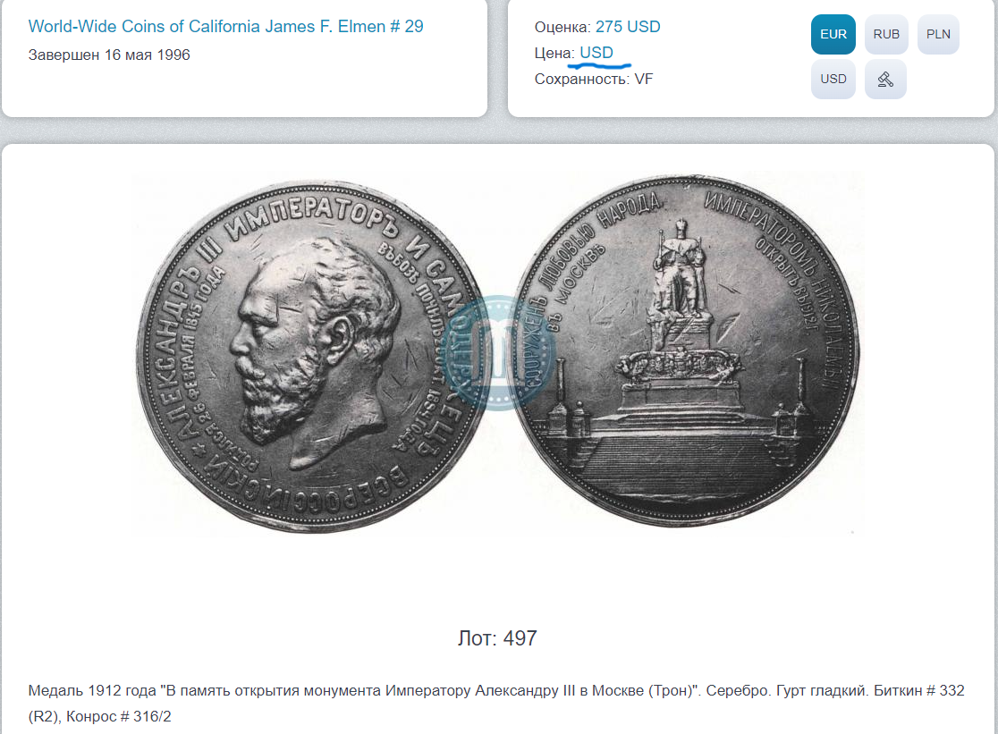 Медаль 1898 "В память открытия монумента Императору Александру II в Москве"