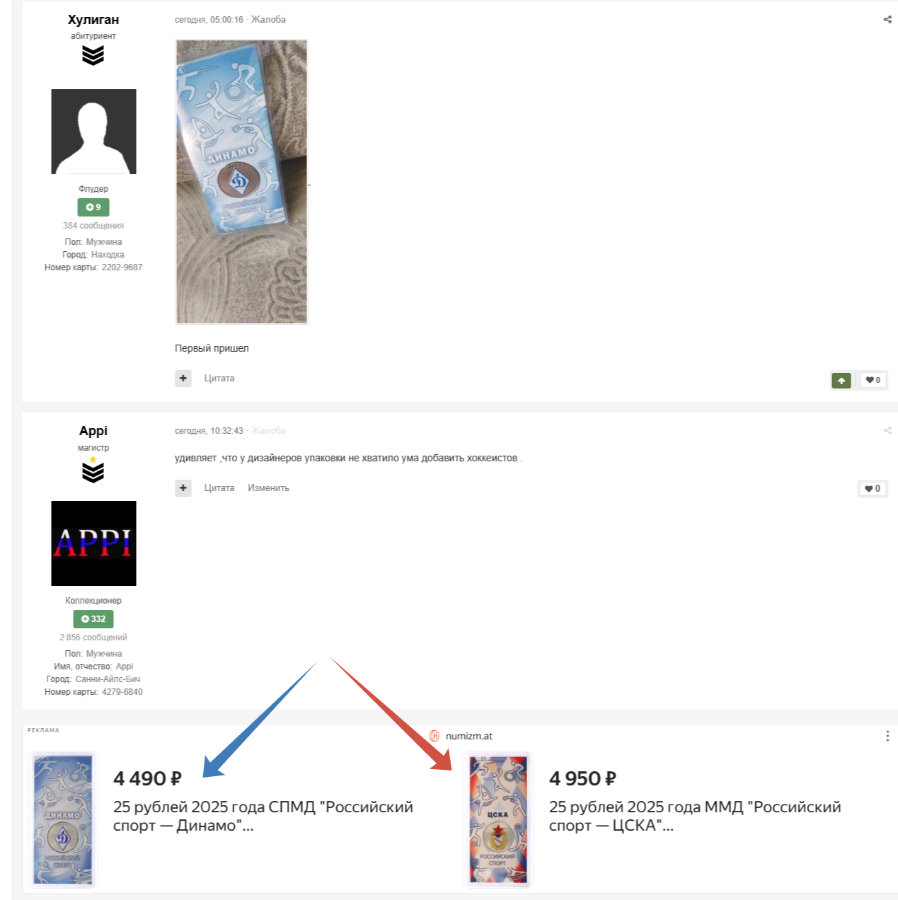 6 сен 2025, 17:15:39 UPD - да, нашел инфо. Блистер - оригинальный. Саур-Могила - без блистера. В 05.09.2025 в 09:28, Прапор сказал: Интересно, а почему 5 спортивных обществ указаны в плане на 2025, 2026, 2027 год по 50тыс штук — они будут каждый год их дочеканивать?)) Да, только что увидел информацию, что возможен "довыпуск" в следующие года, при "наличии спроса". Это пипец какой-то. То есть сегодня народ наберет монеты по 4 тысячи рублей, из расчета 50-тысячного тиража, а завтра ЦБ отчеканит еще миллион экземпляров, и ваша серия за 20 тысяч рублей превратится в ничто за 500 рублей за всю серию. Какое-то странное решение. Давайте ЧЯП дочеканим? 2 Поделиться сообщением Ссылка на сообщение Поделиться на другие сайты