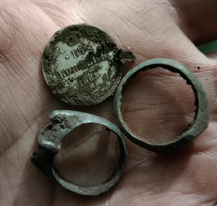 Языковой барьер мешает. А продукция у него только капуста да зерновые. У него как раз не выбито. Он говорит что я единственный и первый кто копает у него. На другой стороне оврага толпы ходили, а тут никто. Этой однодворки нет больше ни на одной карте в широком доступе и он спрашивал в деревне, говорит никто не знает о ней. Там серебра не попадалось, но были пятаки , и другая медь в хорошем состоянии. И мусора нет практически. Соседние наделы почти пустые, все ядро на его участке. Знал бы что не пустит в этот раз, в прошлый раз бы не поленился и  до ночи проходил пока все поле не освоил. Там есть еще не только на участке его, но заросшее все по шею. Этой весной времени не было до травы там походить. Только в июне освободился. А там после малоснежной зимы вся трава ушла.