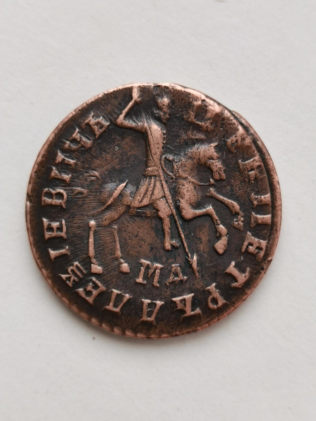 Благодарю всех за ликбез. Правда теперь я знаю об этой монете ещё меньше. Разве что узнал, что при том, что и на монете 1713 го, и на этой вроде одинаковые всадники, да и лошади тоже, жирафом обозвали только того всадника. Меня смущала рябь за всадником, но и на той монете такая же рябь и никого это не смущает. Патина на моей затерта от того, что тот у кого я купил эту монету, я все ещё надеюсь, что это монета :), долго носил ее в кармане с кучей другой мелочи.