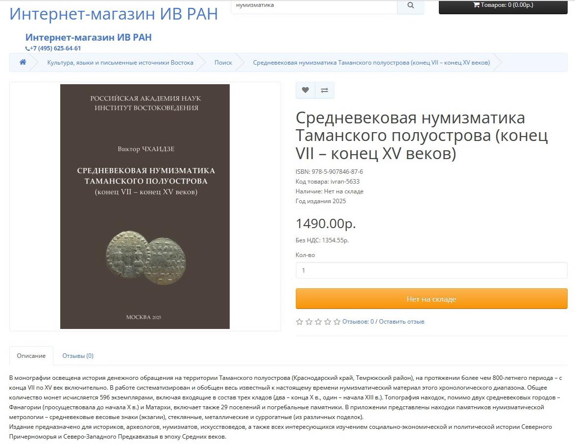 26 дек 2025, 09:01:31 Спасибо, я себе купил две с автографом внизу стр. 48-49: "то же относится к большому количеству сугубо третичных работ этого автора". И далее следует ссылка 36 - тоже про меня - и столь же неверно и безграмотно. "Сугубо третичных", кстати, это надо понимать как "на две трети"? По-русски ВН не научится говорить никогда. ИМХО. Никаких новых мыслей в книжке нет. Зато есть чхаидзе-устаевская железная монета 2005 года, монета со "стоячей" фигурой речи и прочие несуразности - масса откровенных введений читателей в заблуждение, где по глупости, где с сугубой целью сохранения тёплой синекуры на бережку... Я-то вполне могу заблуждаться и иметь неверное мнение, но у самого' В.Н. Чхаидзе, по моему мнению, нет и не может быть своего мнения о нумизматике Тмутаракани, он и монет-то наших держал в руках штук пять или шесть за жизнь. Пример: стр. 53. Утверждается, что монета, публиковавшаяся Бабаевым в 2009 г., по моей классификации 2.2.2, "явная современная подделка" и приводится мнение Сотниковой. Подлинность монеты 2.2.1, найденной, как заявлялось в 1909 г. в Тамани, хранящейся ныне в ГЭ, никогда не оспаривалась, несмотря на полное отсутствие у неё «археологического контекста», в отличие от монеты 2.2.2, найденной, как было заявлено, в окрестностях Анапы через сто лет после первой. В марте 2009 г. она осматривалась К.В. Бабаевым и признавалась сомнительной (вероятно, лишь на основании визуального исследования или изучения фотоизображений) д.и.н. М.П. Сотниковой (Бабаев К.В., 2009. С. 30). То, что 2.2.1 и 2.2.2 принадлежат к одной штемпельной паре, определил С.И. Безуглов (Безуглов С.И., 2015. С. 286), безоговорочно признав монету подлинной. Таково же и независимое мнение А.И. Ведяшкина. Также на неё было получено экспертное заключение (ЦИКЦ, 2020, № 1720558042. URL: http://numexpert.ru/cert_db). К той же паре штемпелей принадлежит экземпляр 2.2.3, на что указывалось (Дуткинский Н.Е., 2014-2. С. 139). Подробнейшие разборы творчества этого графомана от нумизматики - Виктора Чхаидзе - уже производились. Кто желает ознакомиться не только с представленной здесь сублимацией чуши и зубовного скрежета, но и со всем наследием указанного автора с 2003 г., добро пожаловать на Академию. Заслуженной любовью и дружным признанием коллег пользуется мой триптих, освещающий скорбное, но истинное положение дел на Таманском полуострове, в плане его средневековой нумизматики. Там наглядно показано и исчерпывающе доказано, что столь странная позиция г-на Чхаидзе, полностью отрицающая окружающую реальность, далеко не произвольна, а является закономерным следствием исторических процессов. Дуткинский Н.Е., 2024-1. Где же ты, Тмутаракань? Original & Secondary. Часть 1. Начало пути. https://www.academia.edu/126218263/Где_же_ты_Тмутаракань_ Original_and_Secondary_Часть_1_Начало_пути. Дата обращения 26.12.2025. Дуткинский Н.Е., 2024-2. Где же ты, Тмутаракань? Original & Secondary. Часть 2. Пятьдесят и ещё двадцать лет одиночества. https://www.academia.edu/126579093/Где_же_ты_Тмутаракань_Original_and_Secondary_Часть_2_Пятьдесят_и_ещё_двадцать_лет_одиночества. Дата обращения 26.12.2025. Дуткинский Н.Е., 2024-3. Где же ты, Тмутаракань? Original & Secondary. Часть 3. Милые, рядами и колоннами. https://www.academia.edu/126664045/Где_же_ты_Тмутаракань_Оригинальное_и_вторичное_Часть_3_Милые_рядами_и_колоннами. Дата обращения 26.12.2025. Также там разъяснена и моя позиция: упоротое исследование полностью выдуманной в 30-е - 50-е гг. 20 в. Тмутаракани предшественниками и учителями г-на Чхаидзе, ши