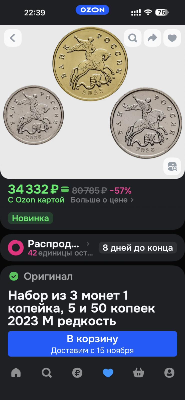 6 ноя 2025, 19:17:23 3 минуты назад, leipasyo370 сказал: Попутал 10 и 50 копеек 2017 отсутствуют, а 1 и 5 копеек есть. Это хотел сказать, имея ввиду низкие номиналы. 0 Поделиться сообщением Ссылка на сообщение Поделиться на другие сайты