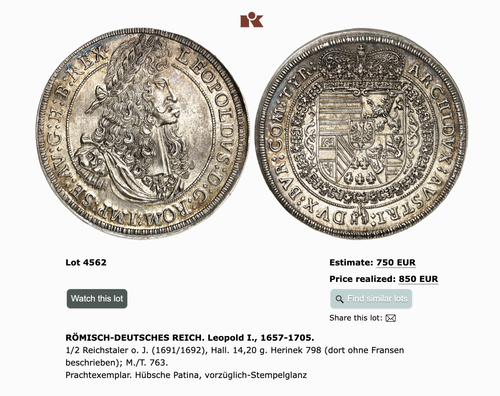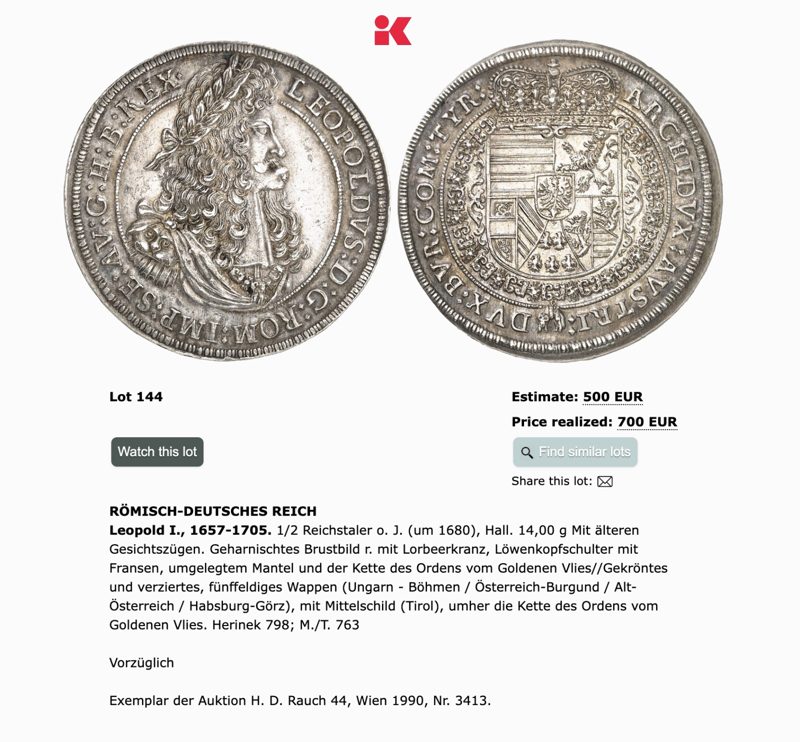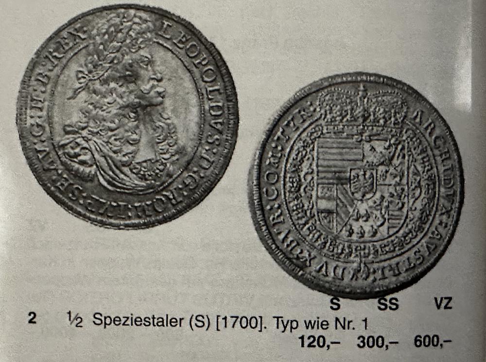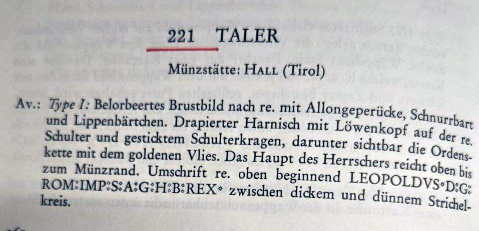 Кюнкер ссылается на "Herinek Münzkatalog Österreichische Münzprägungen 1657-1740"  H-798,  при этом указывая, что там описан похожий тип монет, но без бахромы.  (Тип портрета видимо как на талере Dav 3244)  и на "H. Moser - H. Tursky, Die Münzstätte Hall in Tirol 1477- 1809"  M./T. 763.   К сожалению у меня этих книг нет.