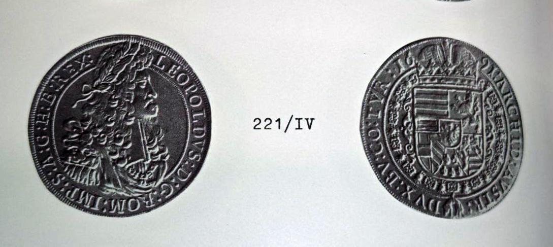 но тип портрета соответствует поздним портретам Леопольда на талерах чеканки Халля. Примерно 1686-1705.