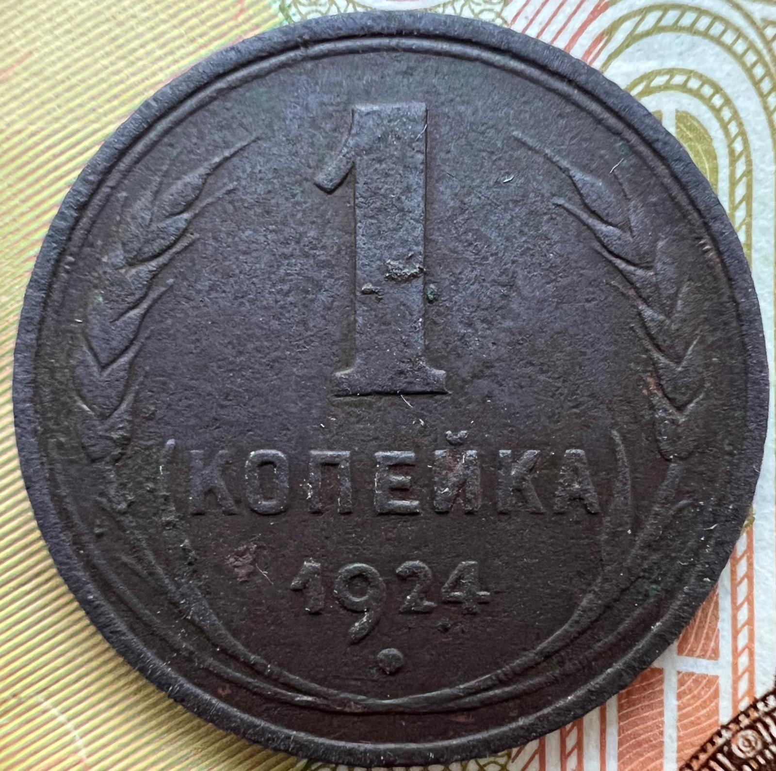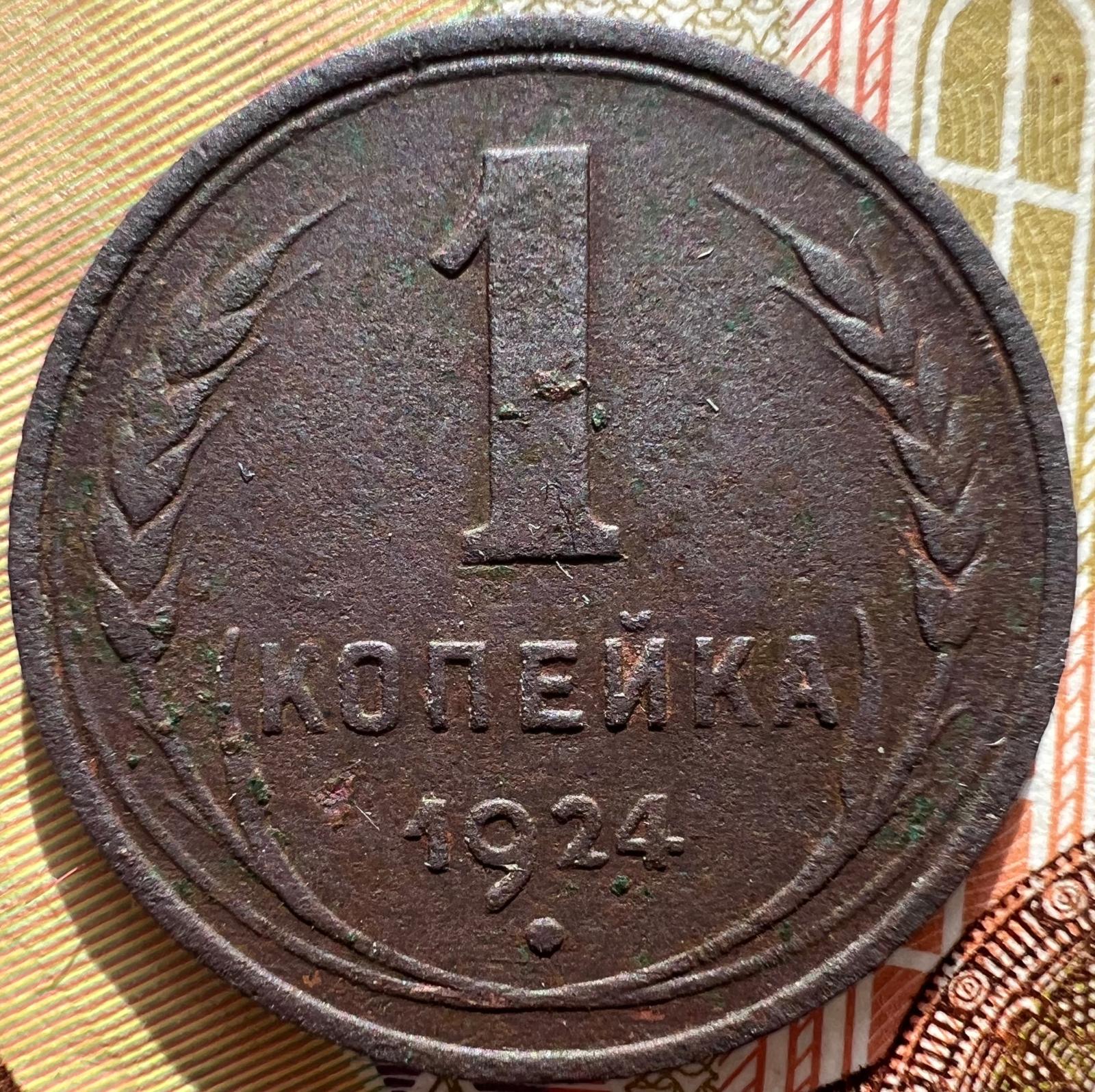 1 копейка 1924, "перепутка", буквы "СССР" - вытянутые. Оценка