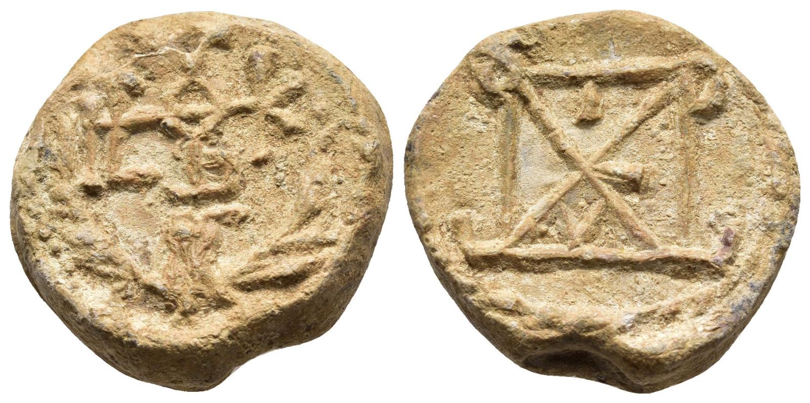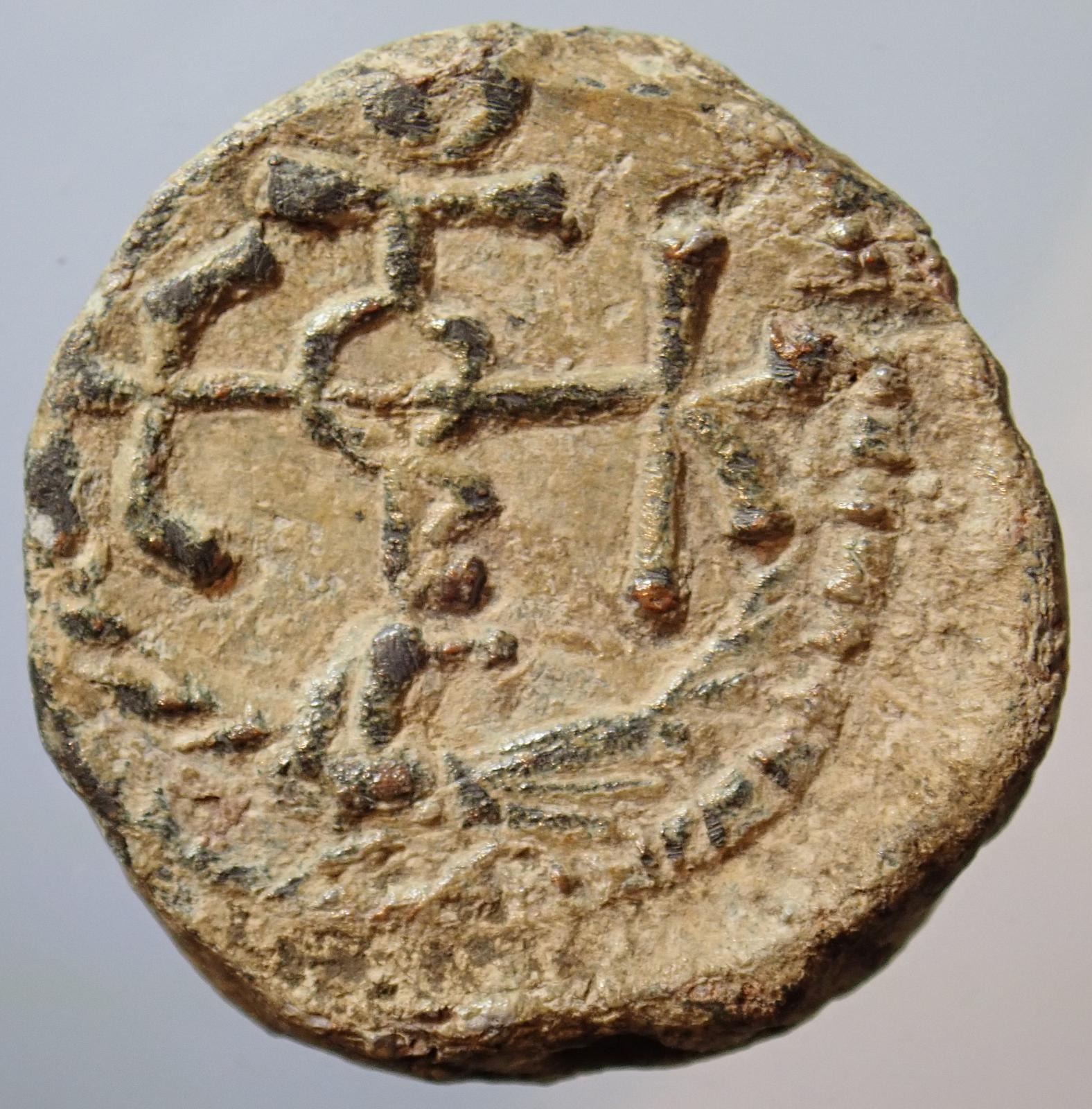 Или монограмма должности чиновника. Очень похоже на монограмму eπαρχοv πoλeως (эпарх города). Если так, то  можно датировать 6-8 веком.