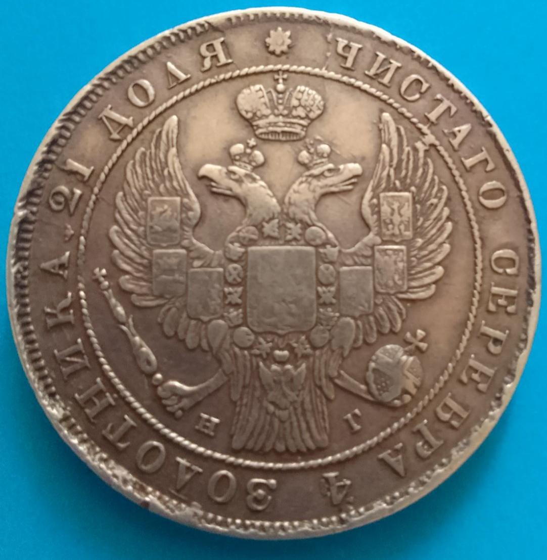 Наиболее простая разновидность (аверс образца 1834 года) из рублей 1838. Рубль довольно редкий.