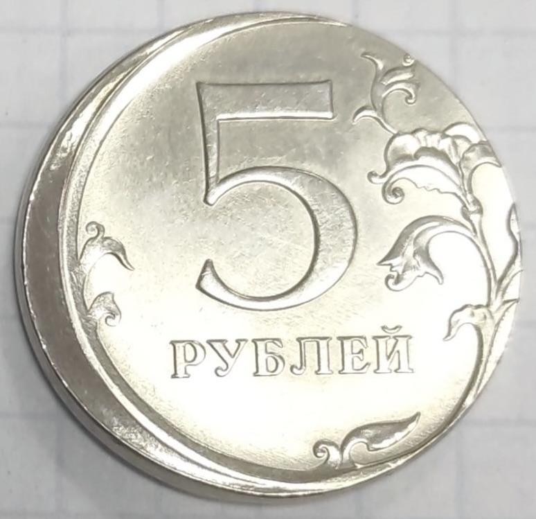 5 рублей 2023 ММД, брак (смещение штемпеля). Оценка