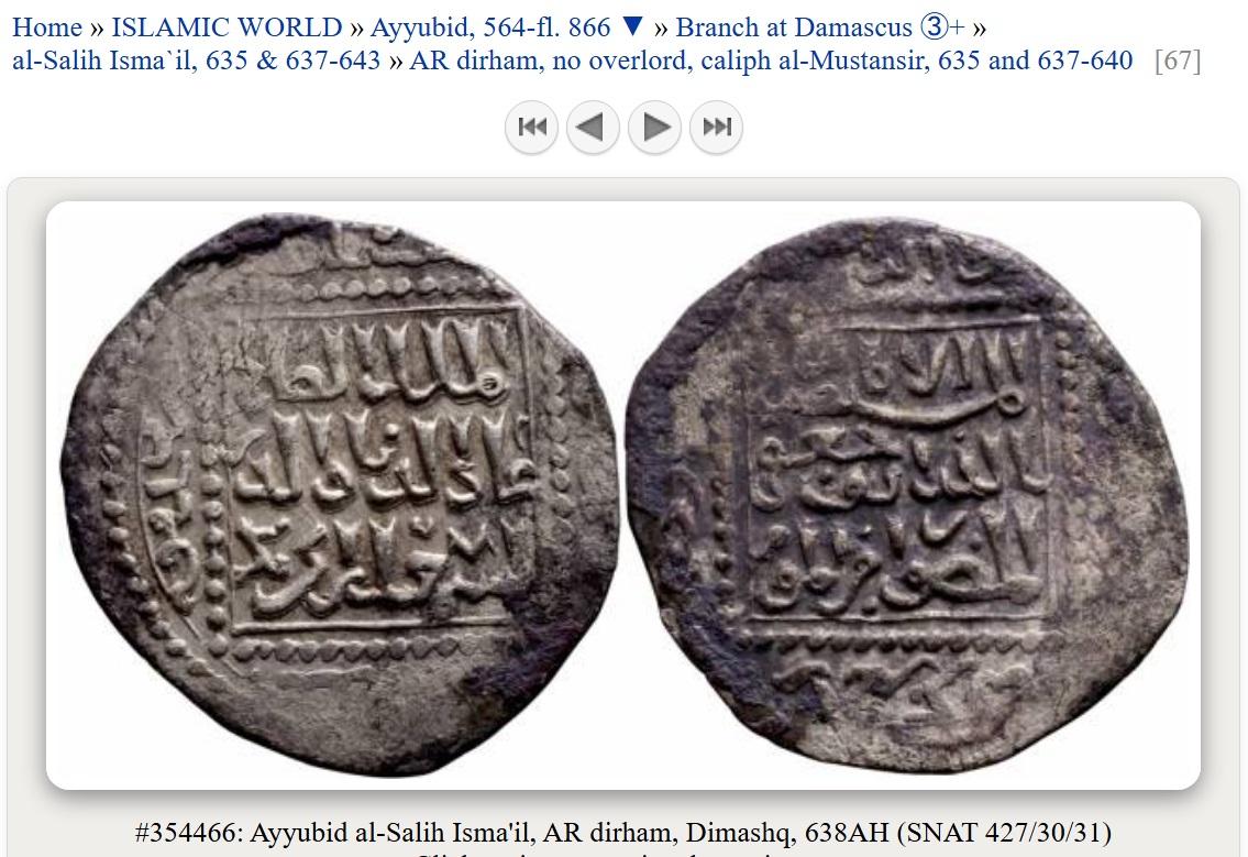 Дирхем, айюбиды, Ал-Салих Исмаил чекан Димашк.