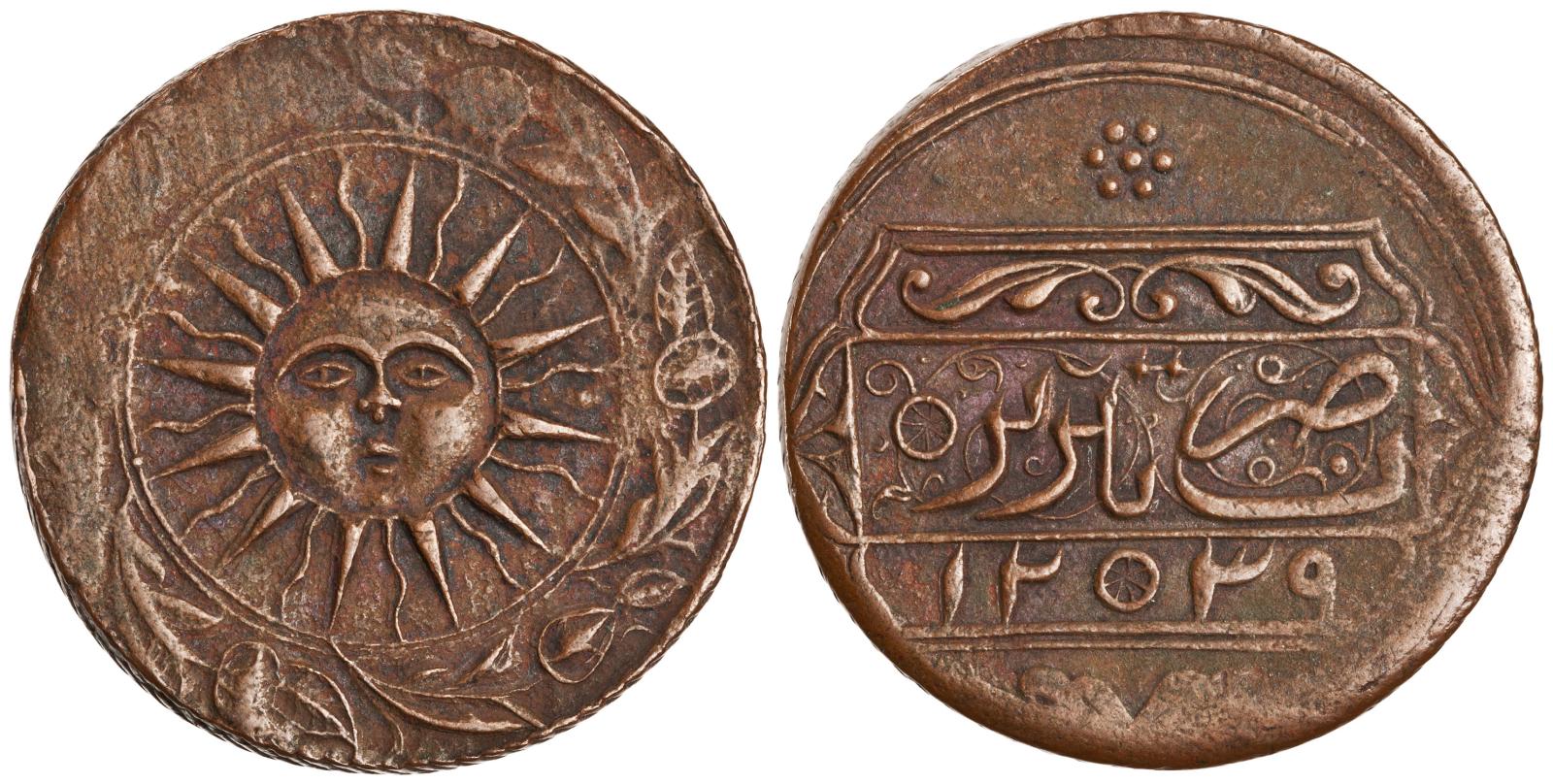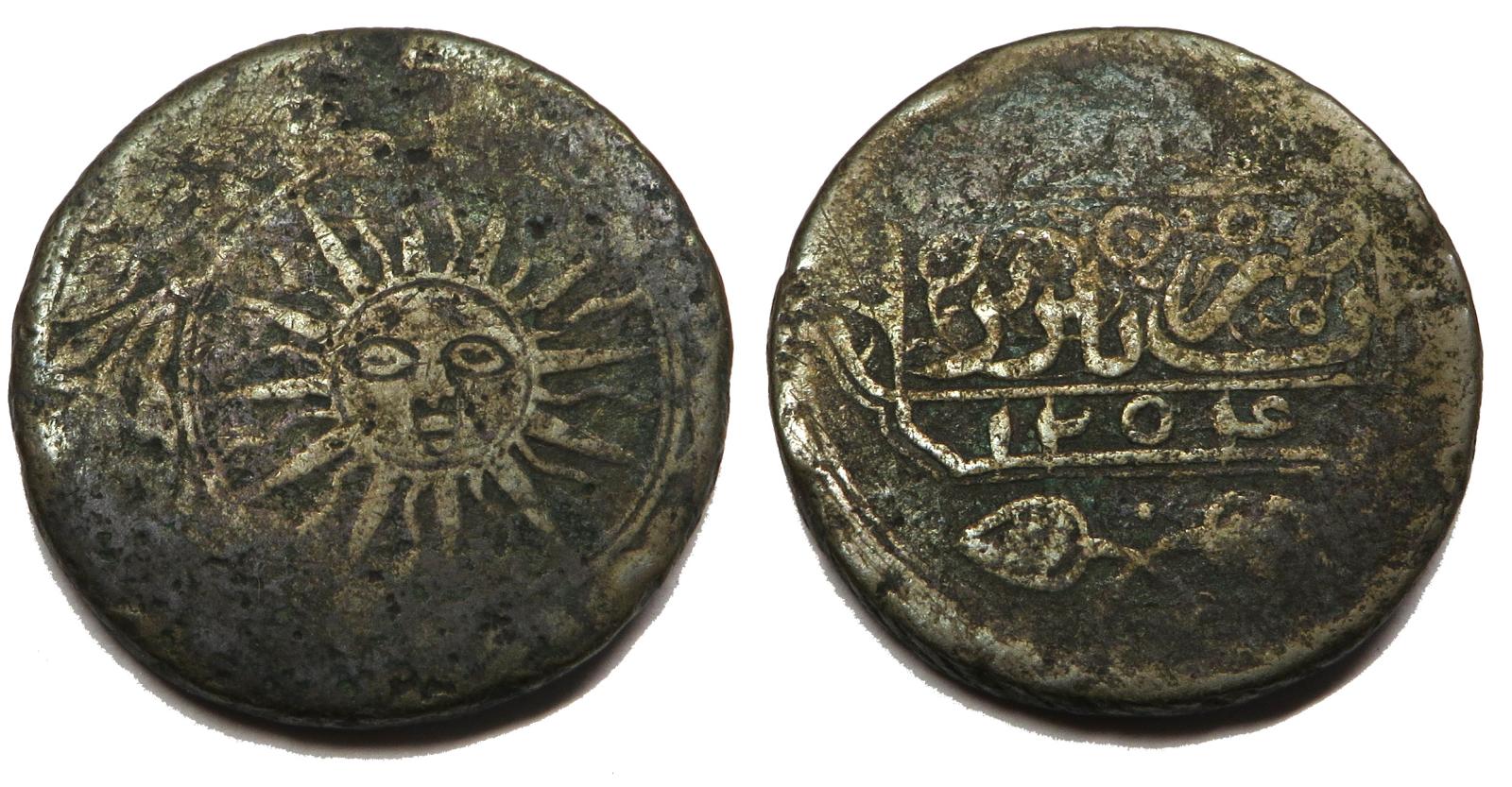 "Я бы рискнул предположить, что изображение солнца было оттиснуто на другой монете, а линии являются частью дизайна более ранней монеты"