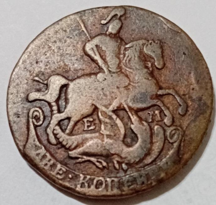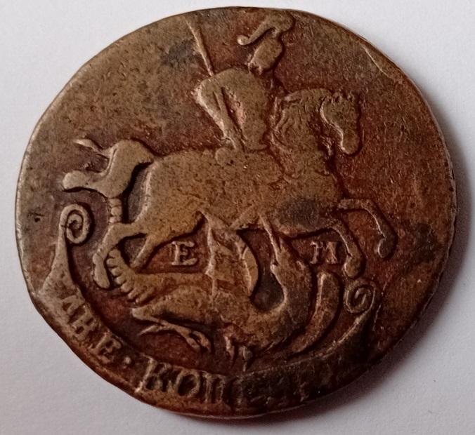 Описание лота: 2 копейки  1766 ЕМ.  Фото при дневном и под лампой.