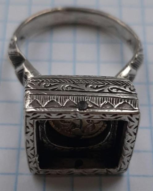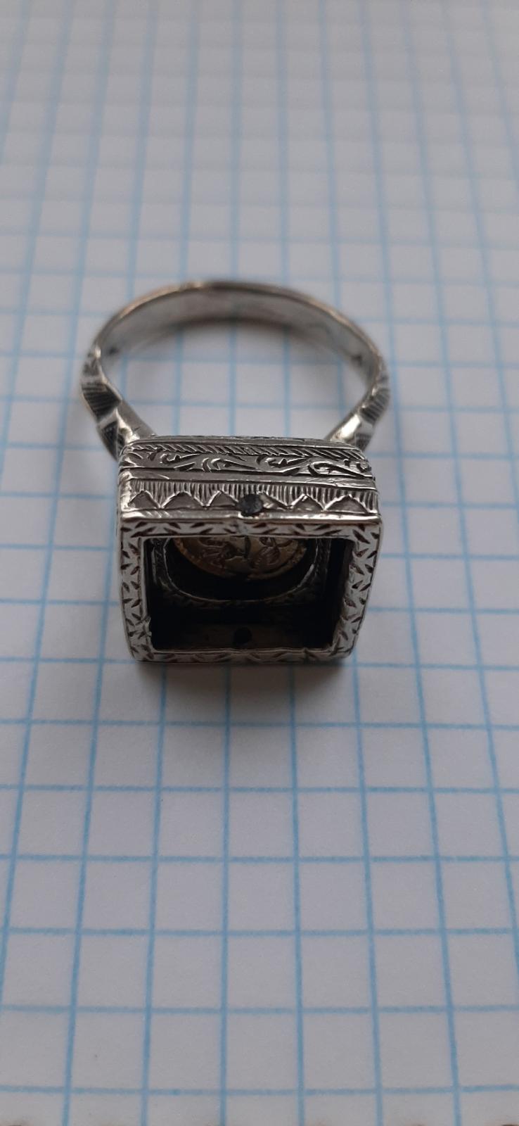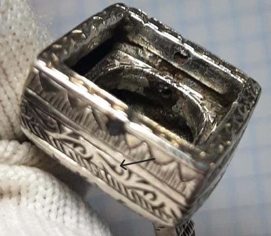 Да все верно,он вращался,был на штифтах,они сгнили и он вниз колодца провалился,его мне ювелир извлек.Золотой щиток проба 300++,а сам перстень серебро проба высокая,ну со слов ювелира.Интересует датировка перстня.