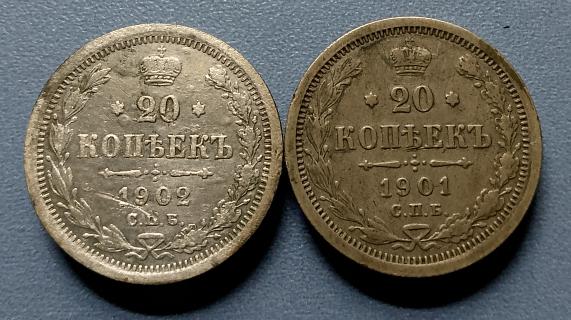 20 копеек 1901 СПБ - ФЗ и 1902 СПБ - АР. Оценка для биржи