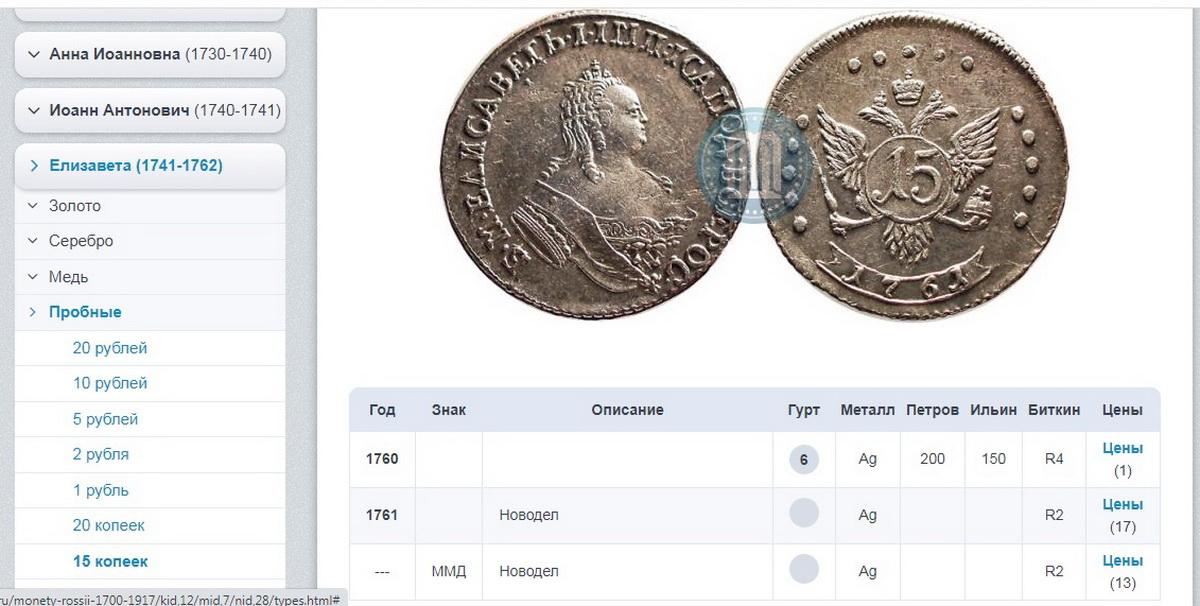 Так в том то и фокус! С одной стороны - по точкам и диаметру - подходит к 15 копейкам Екатерины2....с другой стороны -  профиль,имя,вес ,диаметр - похожи на Елизавету. Что у Елизаветы нет 15 коп. - все знают....