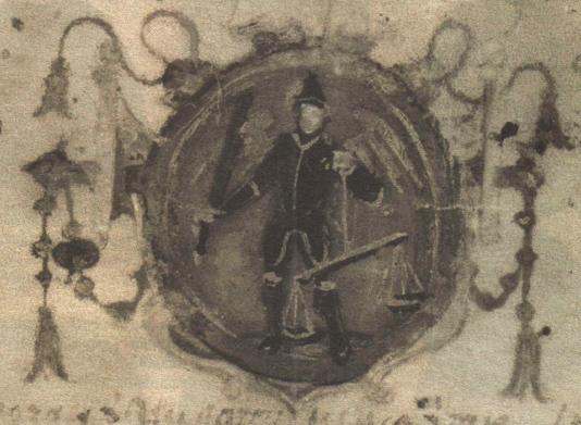 "...печати местской на ратуш Архангела Михаила в одной раце меч, а в другой вага".