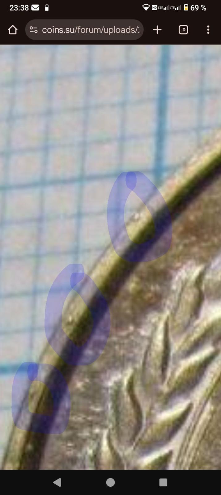 Я вижу не пузыри, а дефекты штемпеля, хотя по таким отвратным фото трудно судить. Зато вот вам ещё пример - даже не искал специально, буквально сейчас кто-то выставил на продажу, уж это точно чеканка, т.к. биметалл.