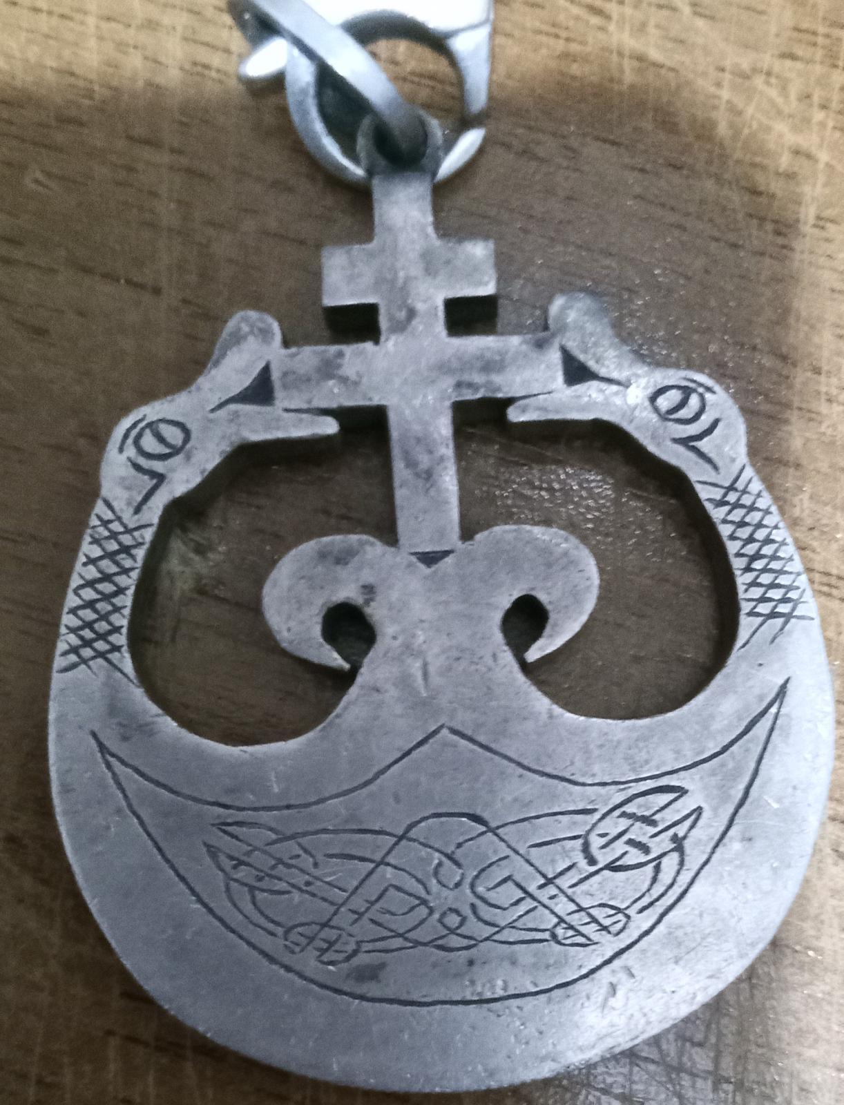 Как интересно, получается что-то типа змеевика, и крест и змеи и руны . Крест разбивает язычество в виде двух змей. А у меня змеи без креста значит еще языческая бляха.