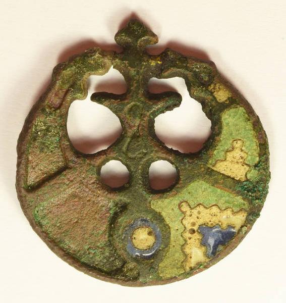 да никакой это не амулет! пряжка от ремня. поэтому и есть остатки заклёпок, аж да 4 штуки. крепилась ими к коже, а подвеску к чему так приклёпывать? Пастырь направил не в то русло...