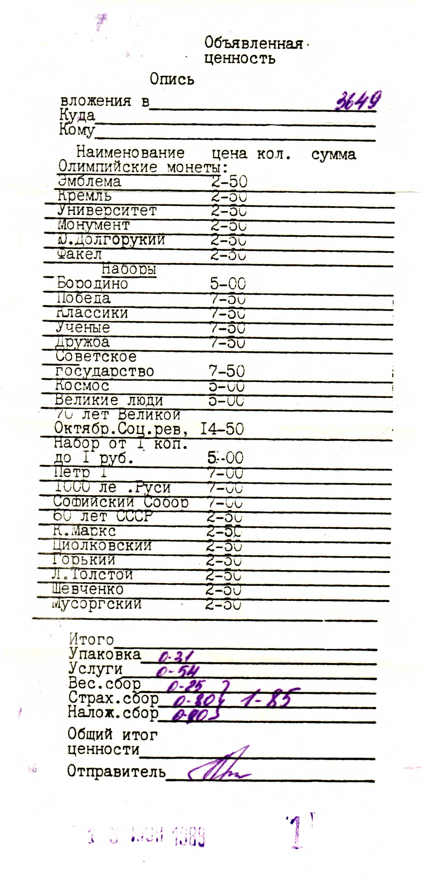 исторические цены наборов олимпиады-80