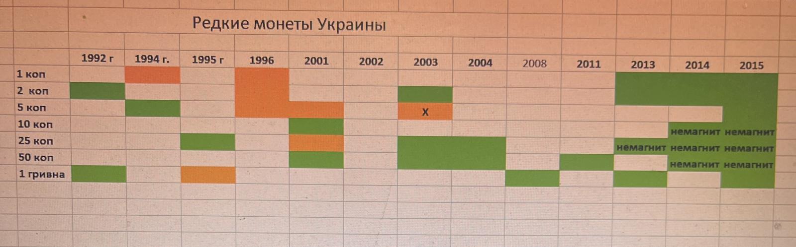 Выкладываю обновленную таблицу монет Украины по 2015 год.