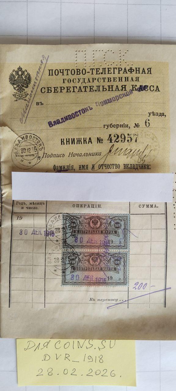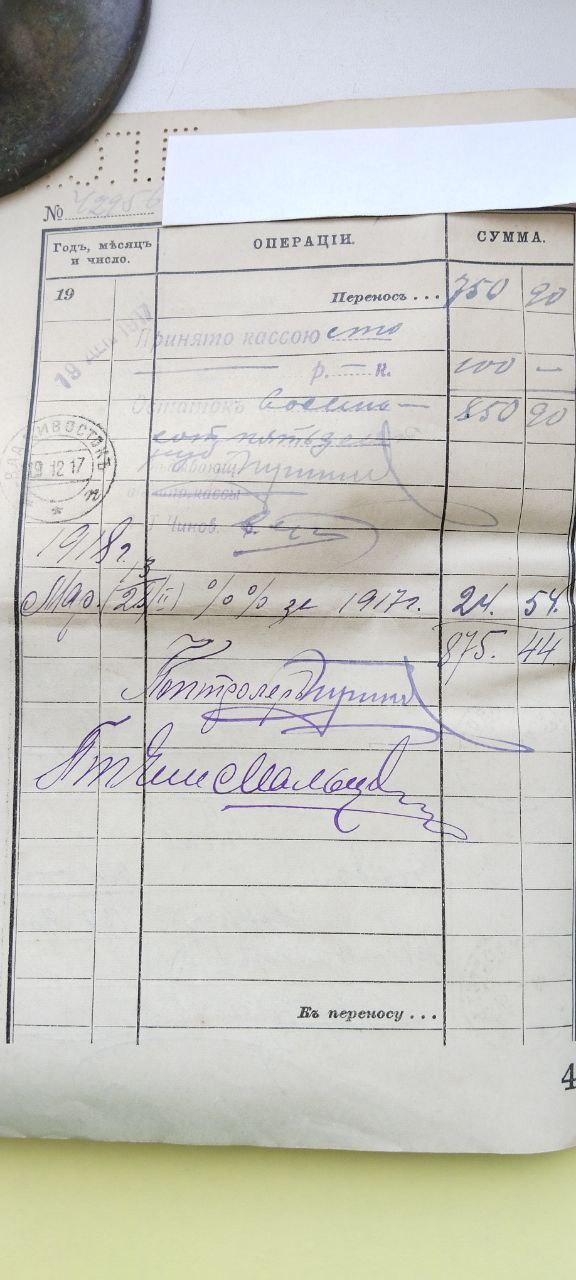 Записи 1918 года в книжках образца 1915 года внутри которых сохранена нетронутая пачка " американок"