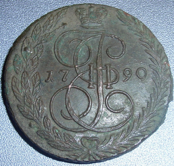 По реверсу пятак с аверсом типа 1788-1796г ЕМ.Предпологаю,что передатировка 1790/89 с двойным ударом.