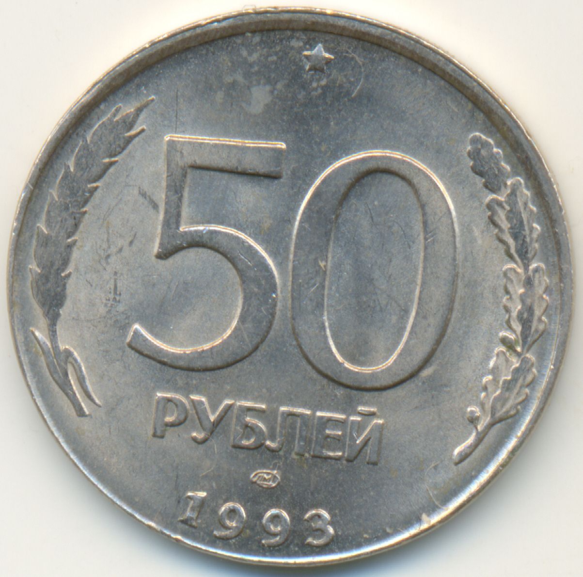 50 рублей 1993года на 20рублевом кружке.