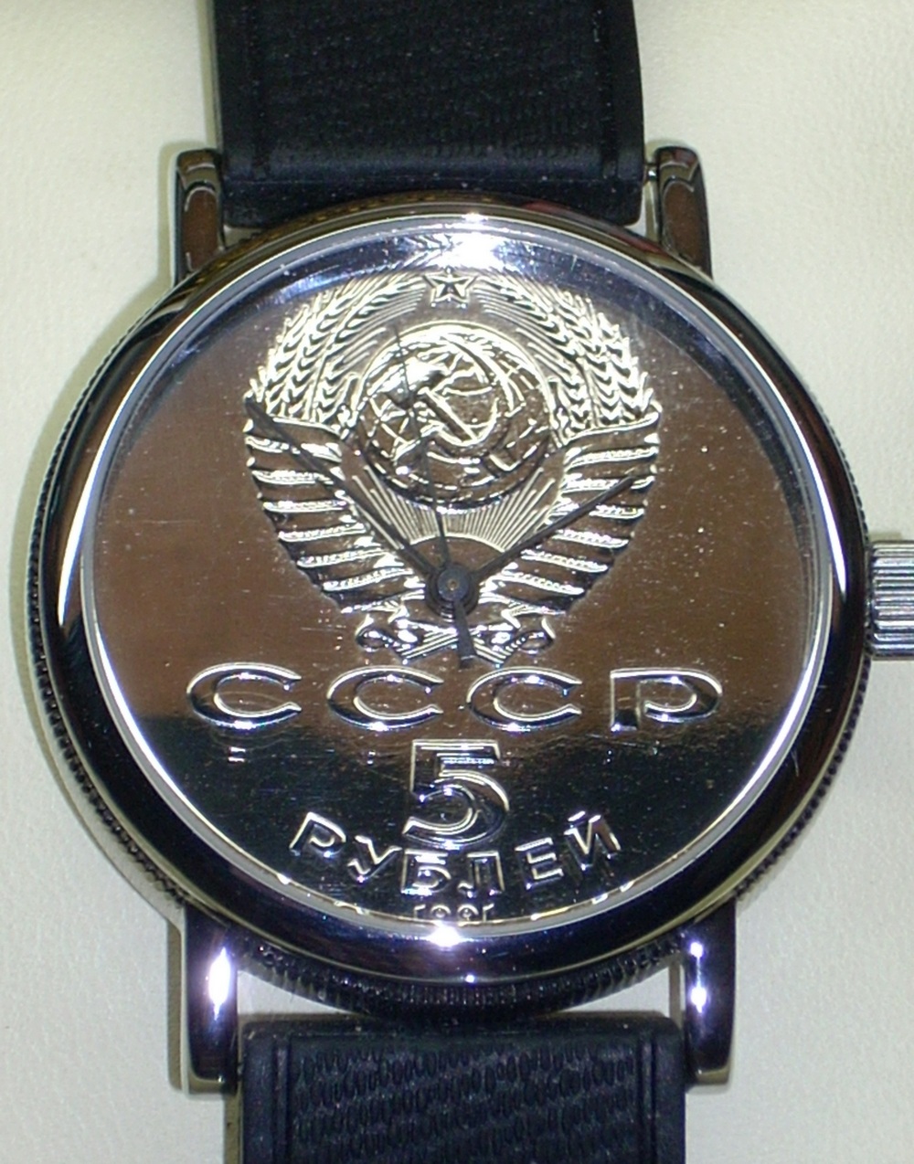 с циферблатом, изготовленным из аверса монет номиналом 1 рубль СССР.
