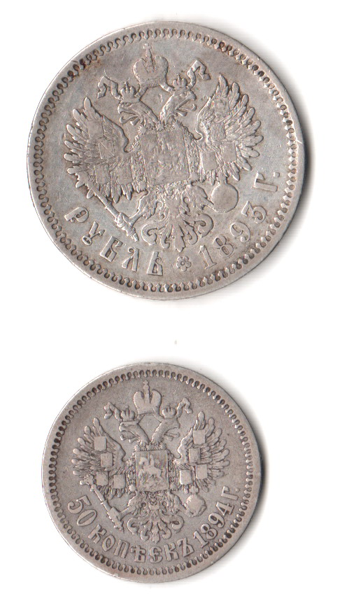 рубль 1893 аг и полтина 1894 аг. помощь в оценке