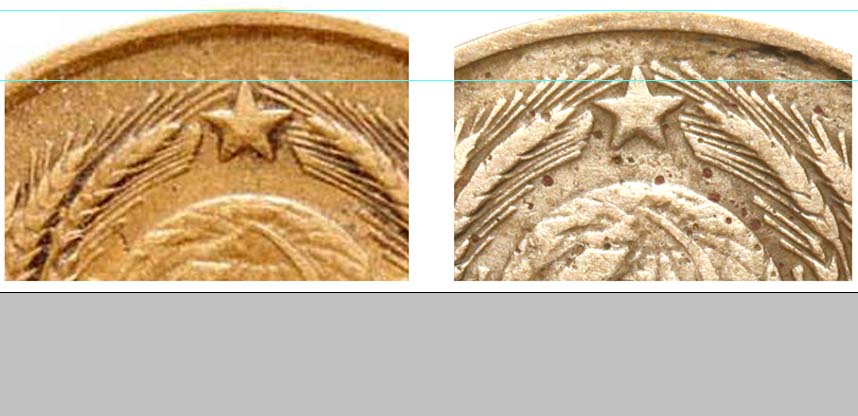 Вот есть 2 3-ки 50-го года, вроде как обе с аверсом 3.1. При ближайшем рассмотрении оказалось, что аверсы несколько разные - в одном случае кант уже, первая буква С не касается канта, звезда дальше от этого самого канта. Такой вариант присутствует на монетах 49-го года и вот нашелся в 50-м. В другом случае кант шире, первая С касается канта, звезда, соответственно, ближе к канту. Такой вариант на большинстве монет 50-го года, а так же на всех виденных мной 51-го и 52-го с аверсом 3.1. Вопрос - не попадался ли кому 1-й вариант в 1951-52, и второй в 1949-м?