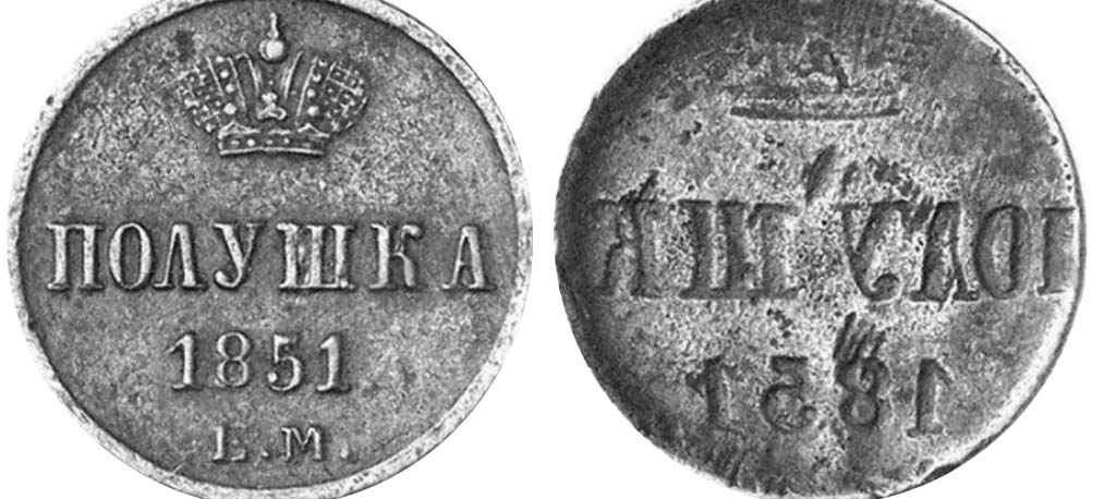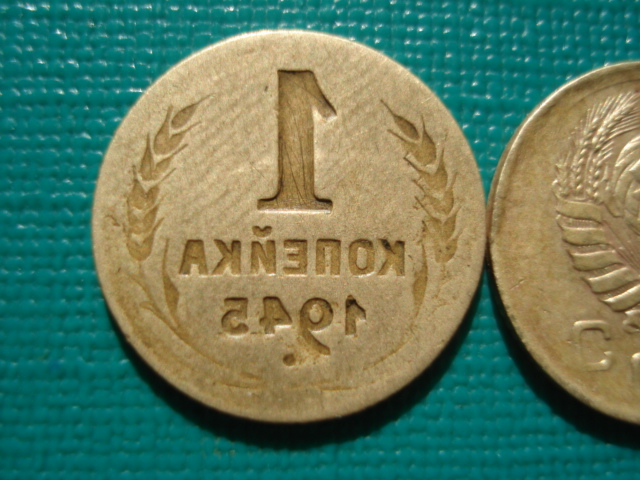 Такого «растекания» инкузного оттиска как на полушке, на копейке вряд ли удастся достичь, даже при множественном повторении ударов. Сдаётся мне, что монета «работающая» штемпелем залипла к штемпелю находящемуся всегда в кольце, и оно (кольцо) не позволит рисунку расширятся, только деградировать (уплощаться и расширятся) самим деталям рисунка.