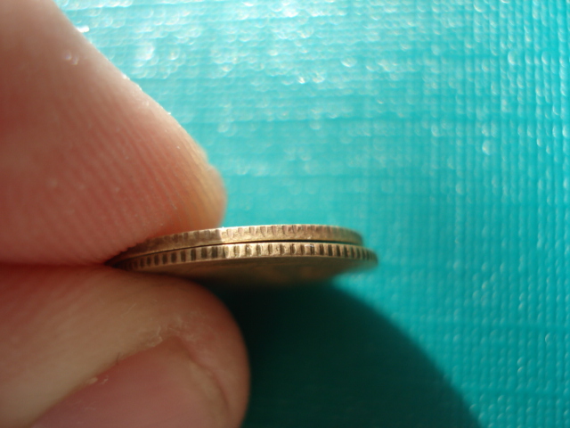 Поставлю внизу рисунок монеты претерпевшей на себе удар через две свинцовые полосы. «Рукаблудчики» такие монеты (разных номиналов) пытаются втюхивать за пробники.