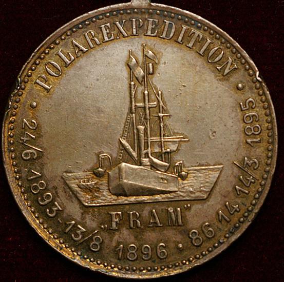 Памятная медаль посвященная Норвежской полярной экспедиции под руководством Фритьофа Нансена (1861—1930 гг.) на судне «Фрам». Королевство Норвегия.