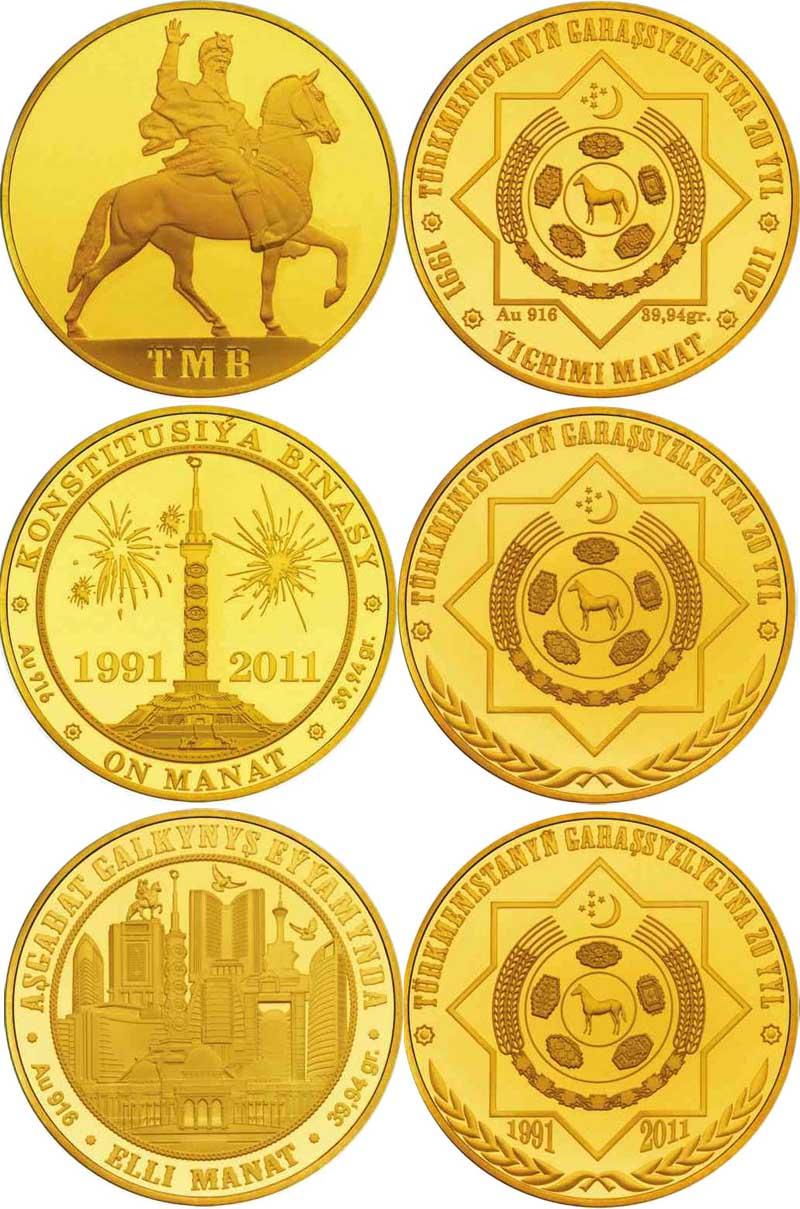 10, 20, 50 манат 2011 года - 20 лет независимости Туркменистана, Au916