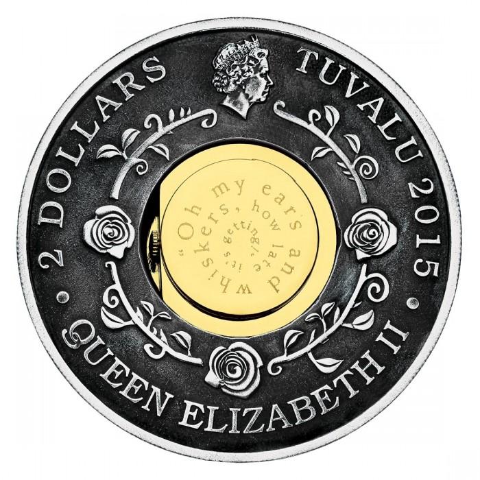 2 доллара 2015 года, Тувалу, "150 лет Приключениям Алисы в Стране Чудес", 2 тройские унции серебра 999, Тираж 2 500 штук.