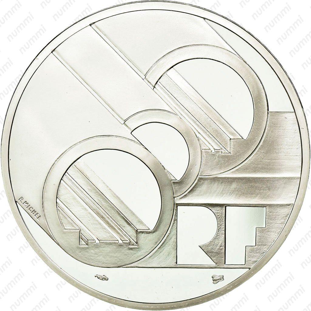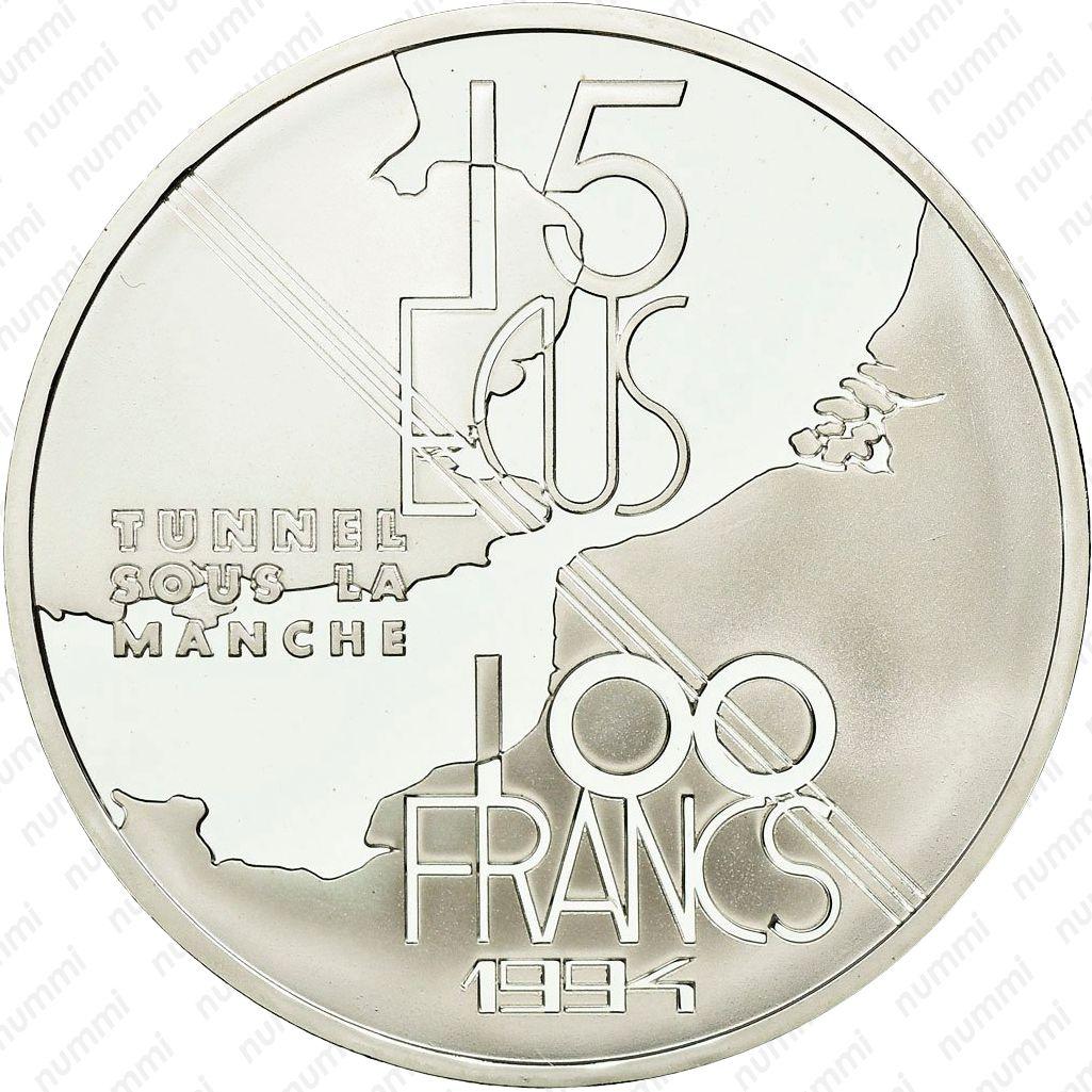 100 франков 1994 года, Франция, "Тоннель под Ла-Маншем", 22,2 грамма серебра 900.