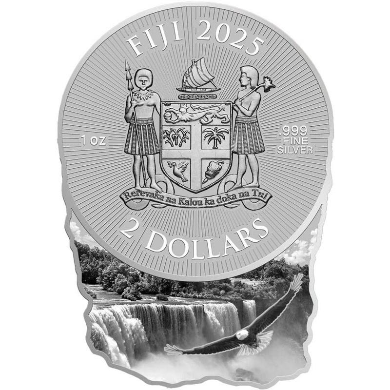 2 доллара 2025, Фиджи, "Чудеса природы. Ниагарский водопад" , 1 тройская унция серебра 999, Тираж 999 штук.