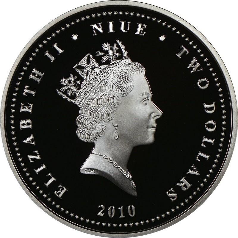 2 доллара 2010, Ниуэ, "Советский транспорт - Троллейбус", 1 тройская унция серебра 999, Тираж 15 000 штук.